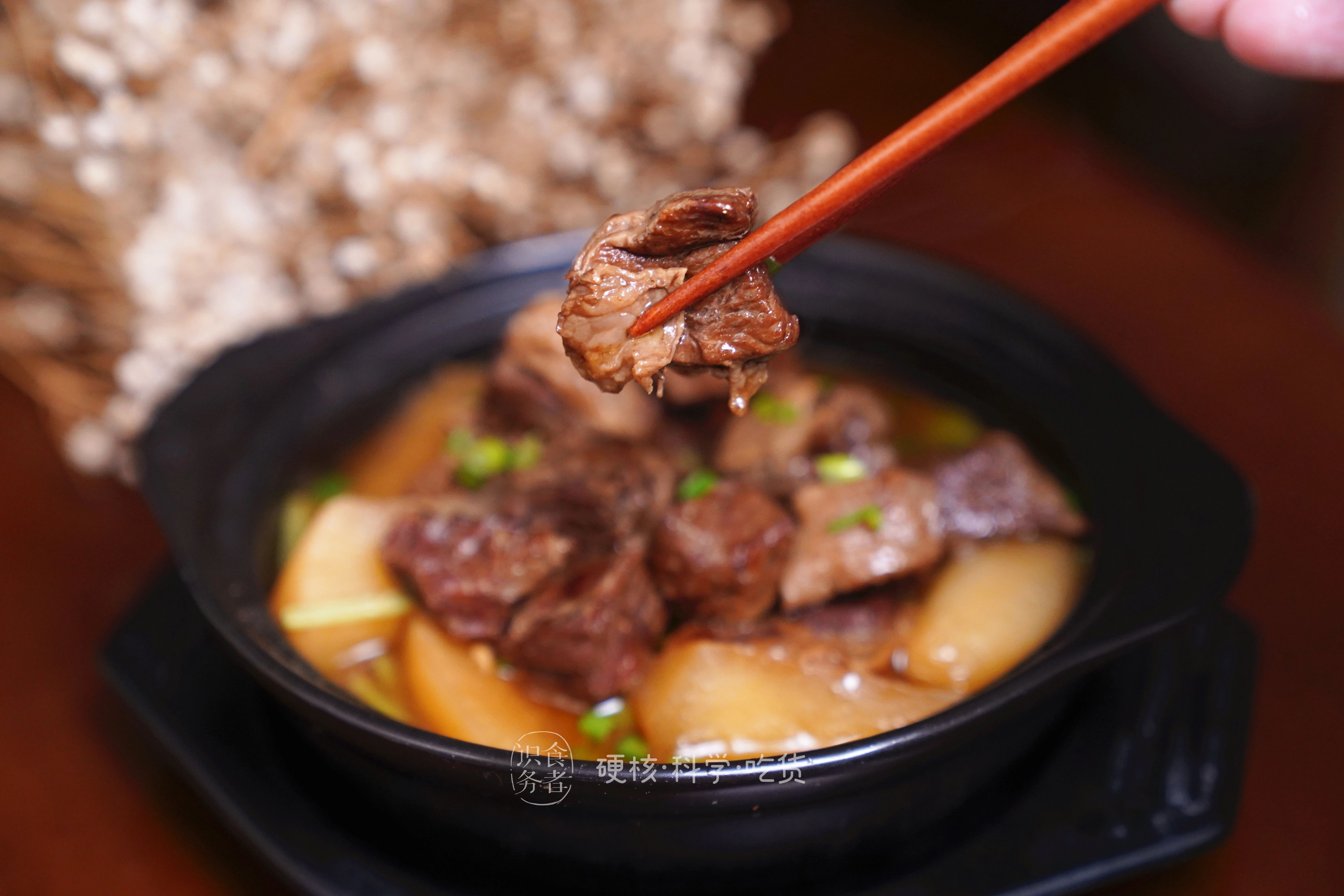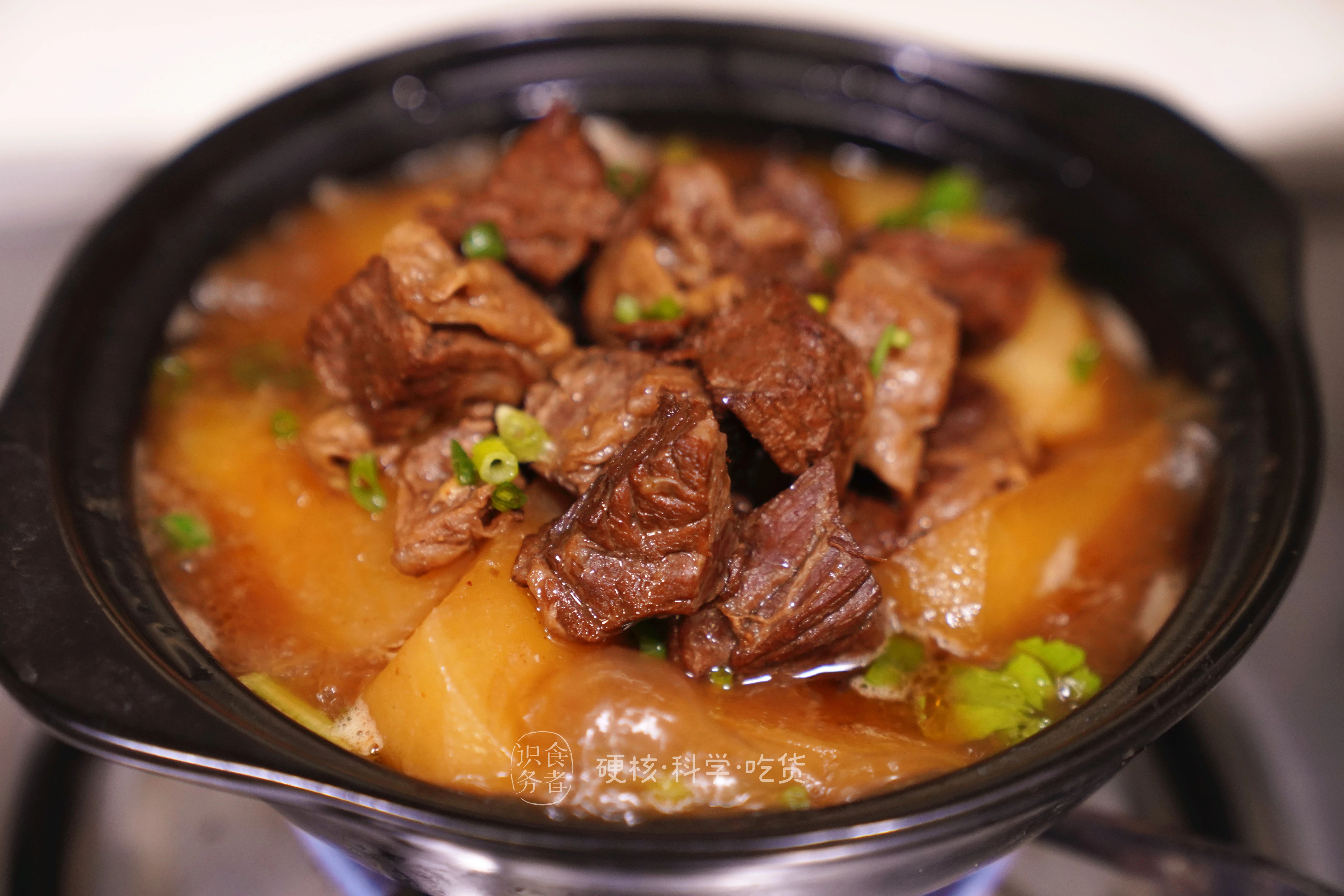 倒入蘿蔔和牛腩,至砂鍋內的牛腩湯汁沸騰,即可關火起菜!