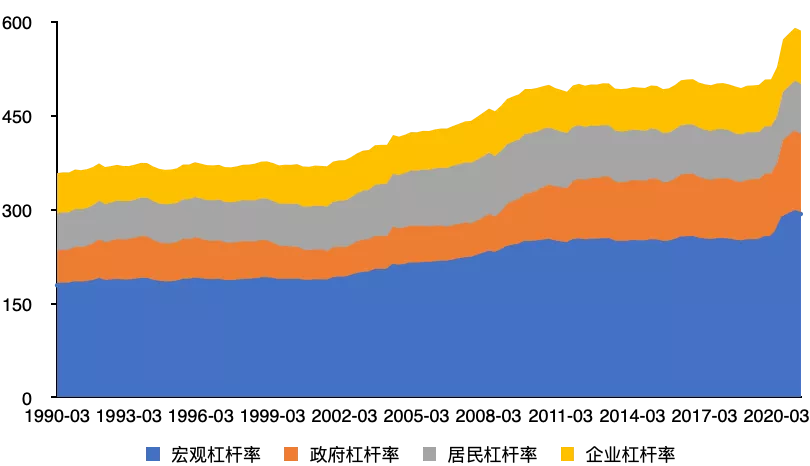 根據國際清算銀行口徑,2008年至2021年3月,我國宏觀槓桿率由147%攀升至287.1%,美國2008年宏觀槓桿率是230.8%。