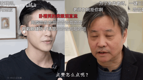 但餘華在面對UP主時卻一轉攻勢,成了氛圍擔當。餘華隨便一開口,彈幕就笑倒一片。