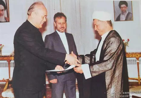 1991年8月,華黎明大使舉行慶祝中伊建交20週年招待會,伊朗外長韋拉亞提出席。
