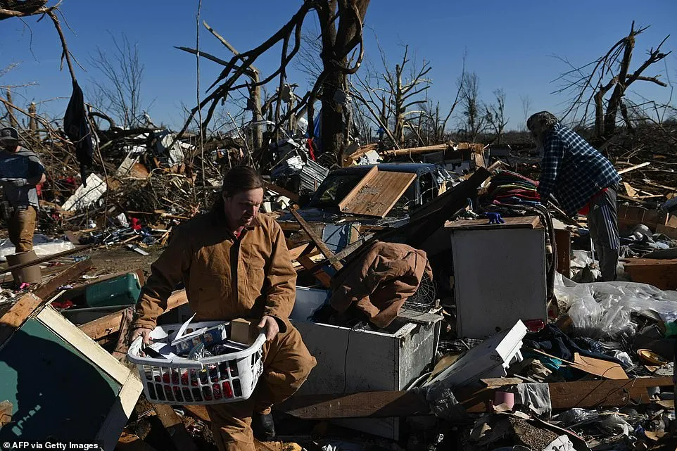 肯塔基州目前很多地方沒有電,沒有水,很多居民的房子甚至連屋頂都沒有,他們在幾乎被摧毀的城鎮裏竭盡所能地搶救。