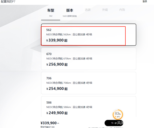 雷達財經通過小鵬官網查詢發現,小鵬P7 562型,售價為33.99萬起,並不符合國家新能源乘用車的補貼標準。
