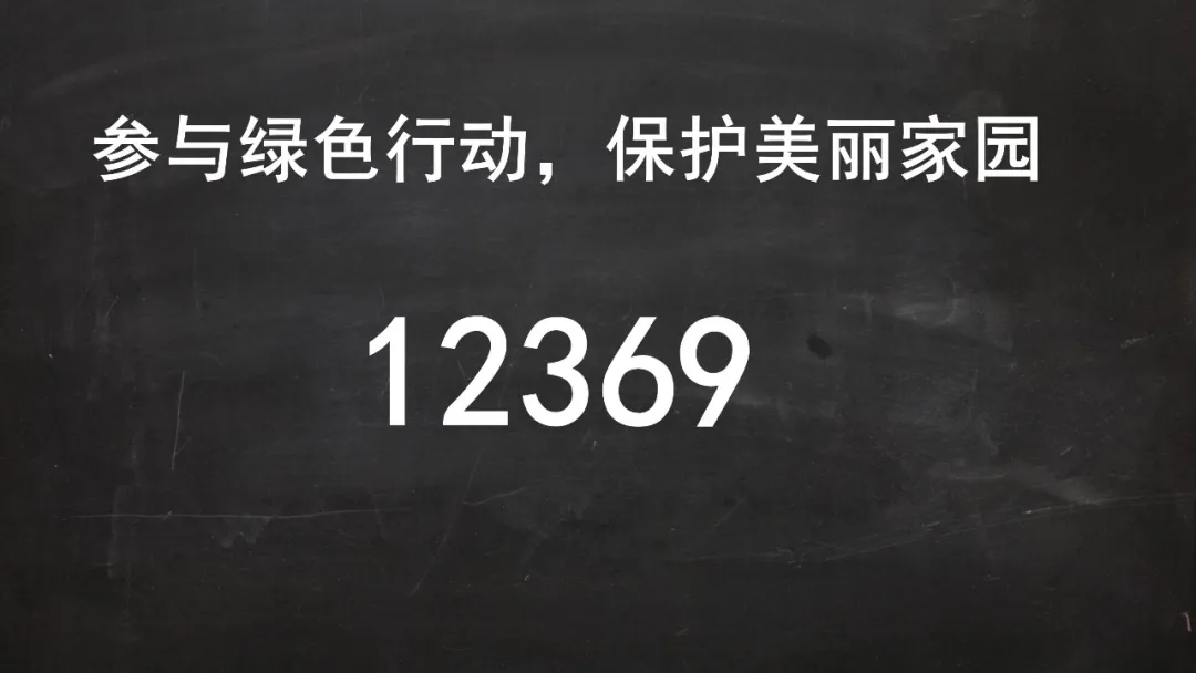 我就拿空調温度控制來舉一個例子,我們夏天在室內非得要把温度調到低得,我們進屋要穿衣服;在冬天,我們非得把空調温度調到熱得在室內脱衣服,難道這才是我們想要的生活嗎?第二件小事想跟大家説的是,我們記住這個電話 12369。大家一旦遇到環境問題,請大家行使我們環保監督的權利,撥打這個電話熱線。