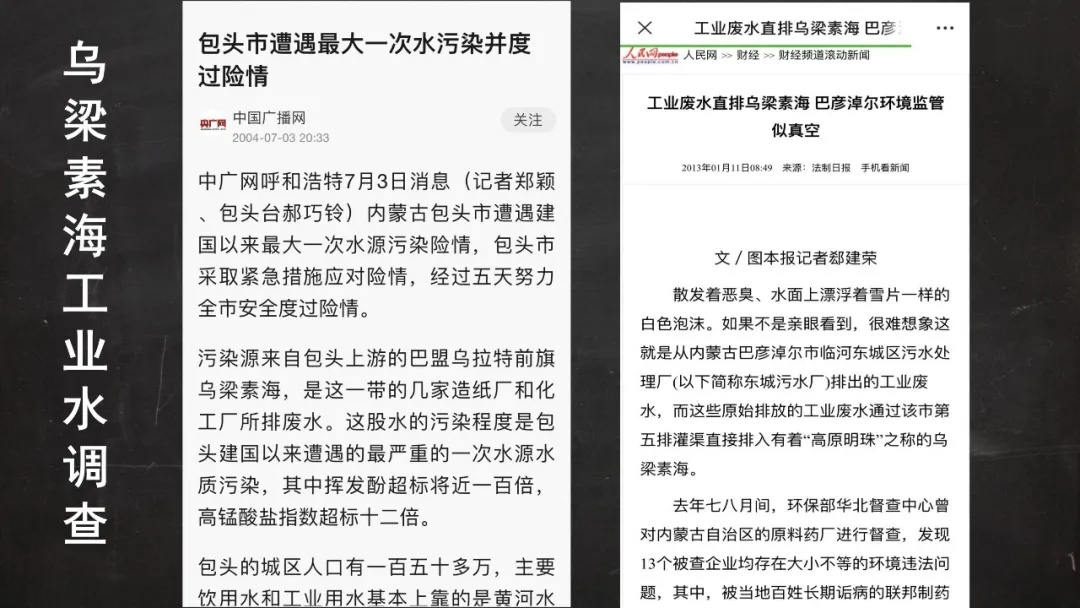 污染源查不清,老百姓的不信任,是我們當時治理烏梁素海最大的阻力。沒辦法就逼着我們和當地的政府只能先治理看得見的污染源,像工業污染和城鎮生活污水直排的問題,後面我們才能夠逐漸地去解決,比較嚴格的農業面污染。