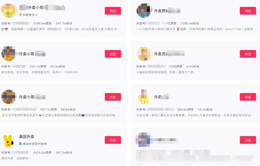 我想知道這類視頻有多普遍,於是分別以【快遞員】、【外賣員】、【農民工】等職業進行搜索。
