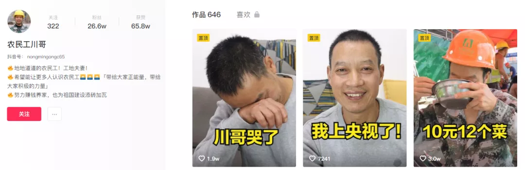 當然網上也有很多真實的草根網紅,比如央視報道過的農民工川哥,就是一地地道道的農民工。