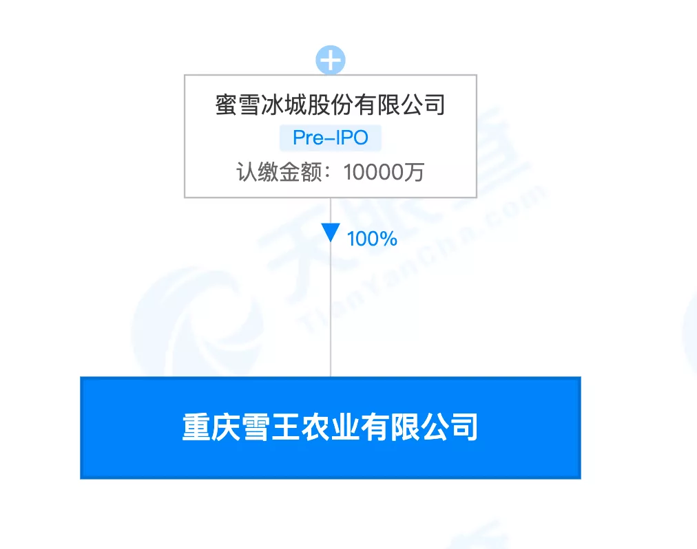 今年8月,重慶雪王農業有限公司成立,註冊資本為5000萬人民幣。該公司由蜜雪冰城股份有限公司100%控股,主要經營範圍是農產品收購和加工。日前,重慶雪王農業有限公司發生工商變更,註冊資本由5000萬增至1億元。