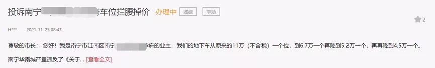 最近,廣西南寧就有多個樓盤,因車位價格大跳水而引起了業主的不滿,紛紛在人民網的留言板上進行控訴。
