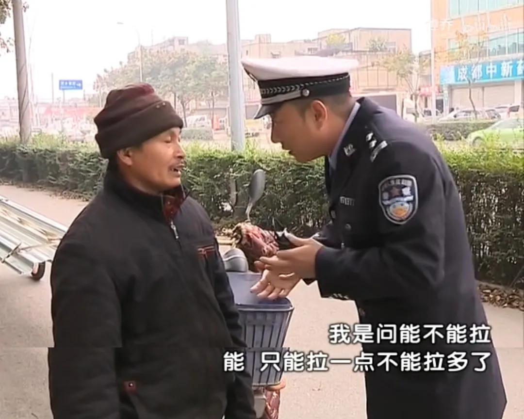 眼看此道不通,譚警官繼續揪着錯誤找大叔:你這車能拉嗎?