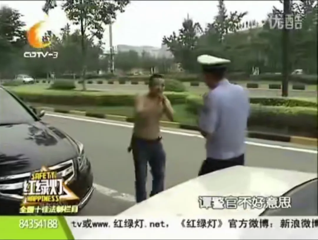 這位大哥闖紅燈被發現了,結果譚警官問的時候他不承認。