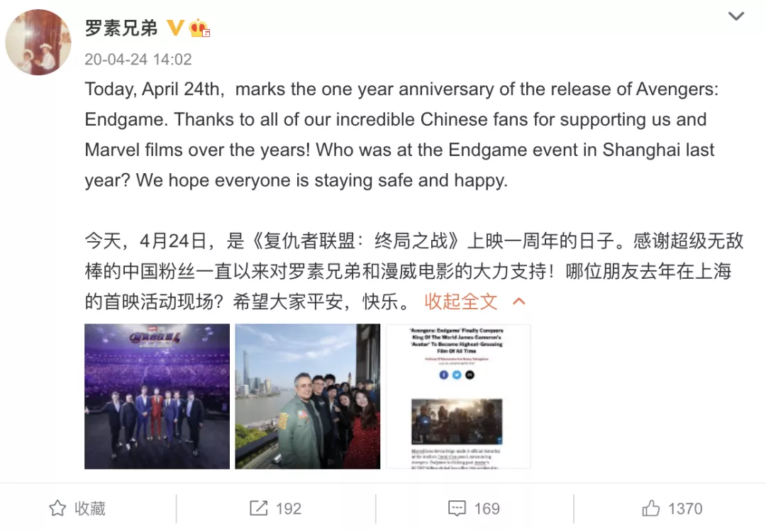 它的微博封面,還是已上映五個月的《黑寡婦》,上面寫着,“即將全球獻映”,紅得無法忽視。