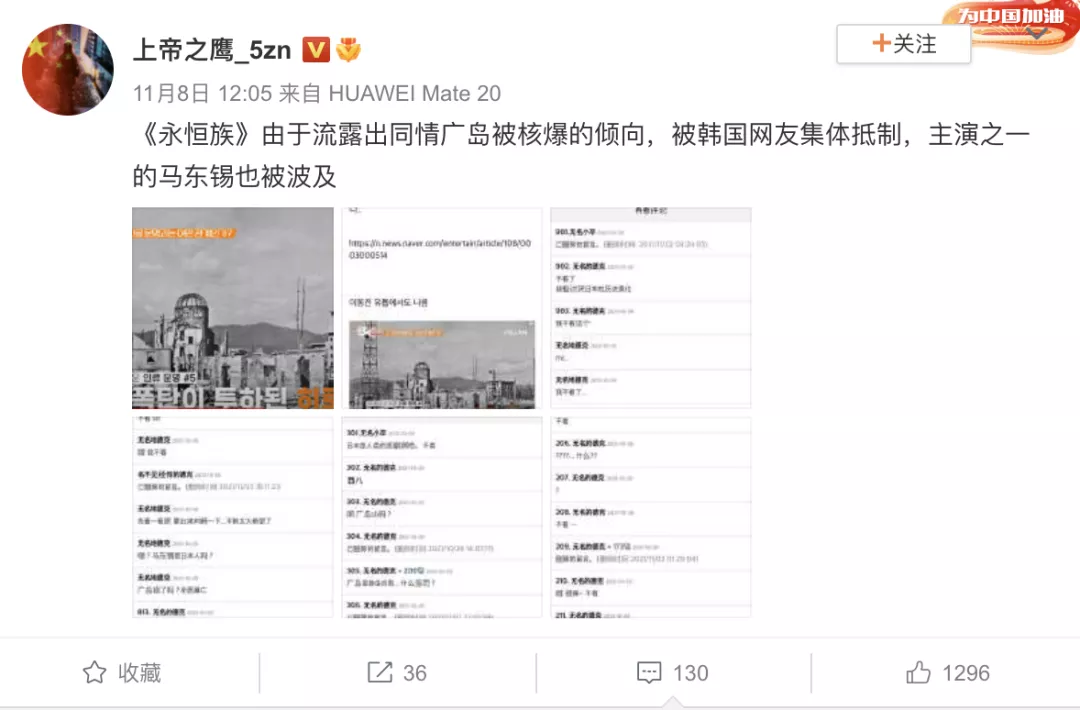 別忘了這篇文章開篇提到,《永恆族》因為片中關於廣島原子彈的情節,讓它在韓國遭遇類似抵制。