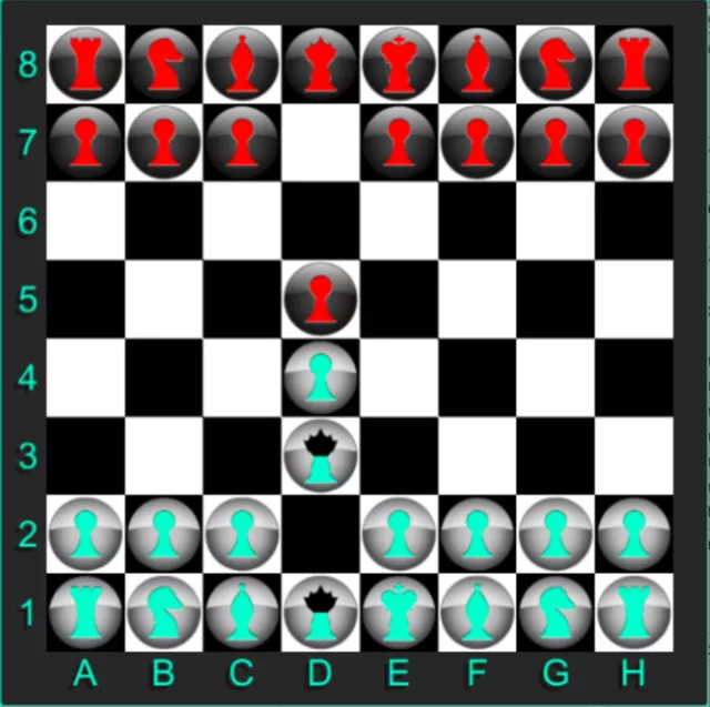 根據“薛定諤的貓”理論,這枚皇后既可能在D1也可能在D3,所以下一步你可以移動任意位置的皇后來展開攻勢;同樣的,對手也可以攻擊你處在任意位置的皇后。