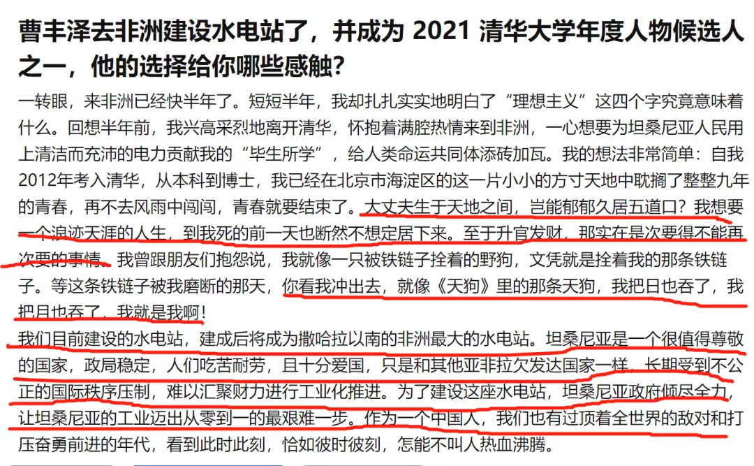 曹豐澤願意親身去非洲為第三世界人民搞基礎建設,有些人卻從來沒有為自己口口聲聲代表的人民做過任何事情。