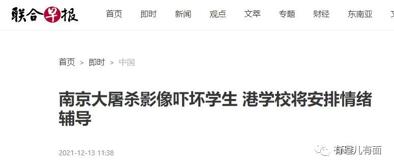 13日,就是今天,亂港黃媒的評論開始跳出來,其中一篇就是開頭所説的,基本風向就是攻擊國家公祭日紀念活動是仇恨教育,香港開展悼念活動是斷送自主權……