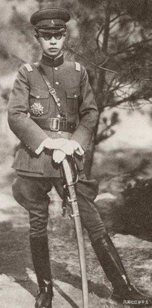 這是偽滿皇帝溥儀着軍服的照相。他扎的就是典型的武裝帶。