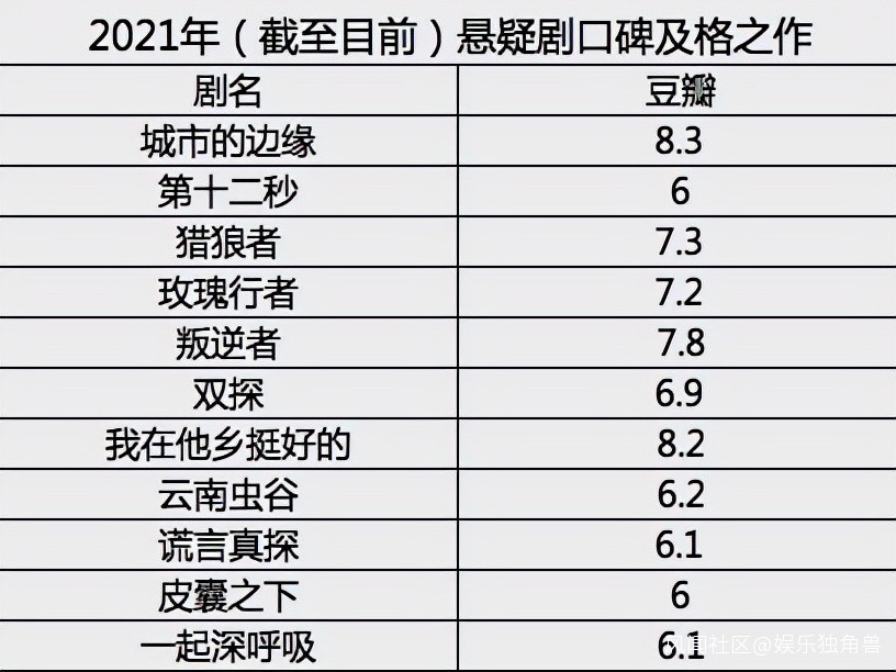 可略顯悲傷的是,截止至目前,**今年內地懸疑劇豆瓣評分過7的作品,還僅僅只有5部。**反觀“隔壁”,無論是大洋彼岸的英美地區,還是香港台灣,今年已經陸續創造出《魷魚遊戲》《逆局》等精品佳作。