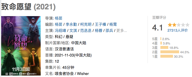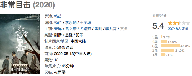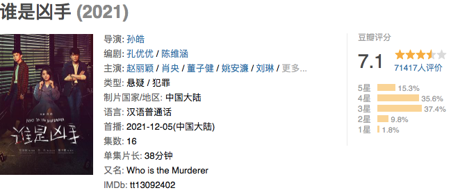 換言之,《誰是兇手》或許可以勉強看成是愛奇藝“迷霧劇場”今年的“門面”之作;但若從整個懸疑劇市場來看,豆瓣評分剛剛過7、演員演技褒貶不一的它,遠不能代表當前內地市場的懸疑劇製作水平。