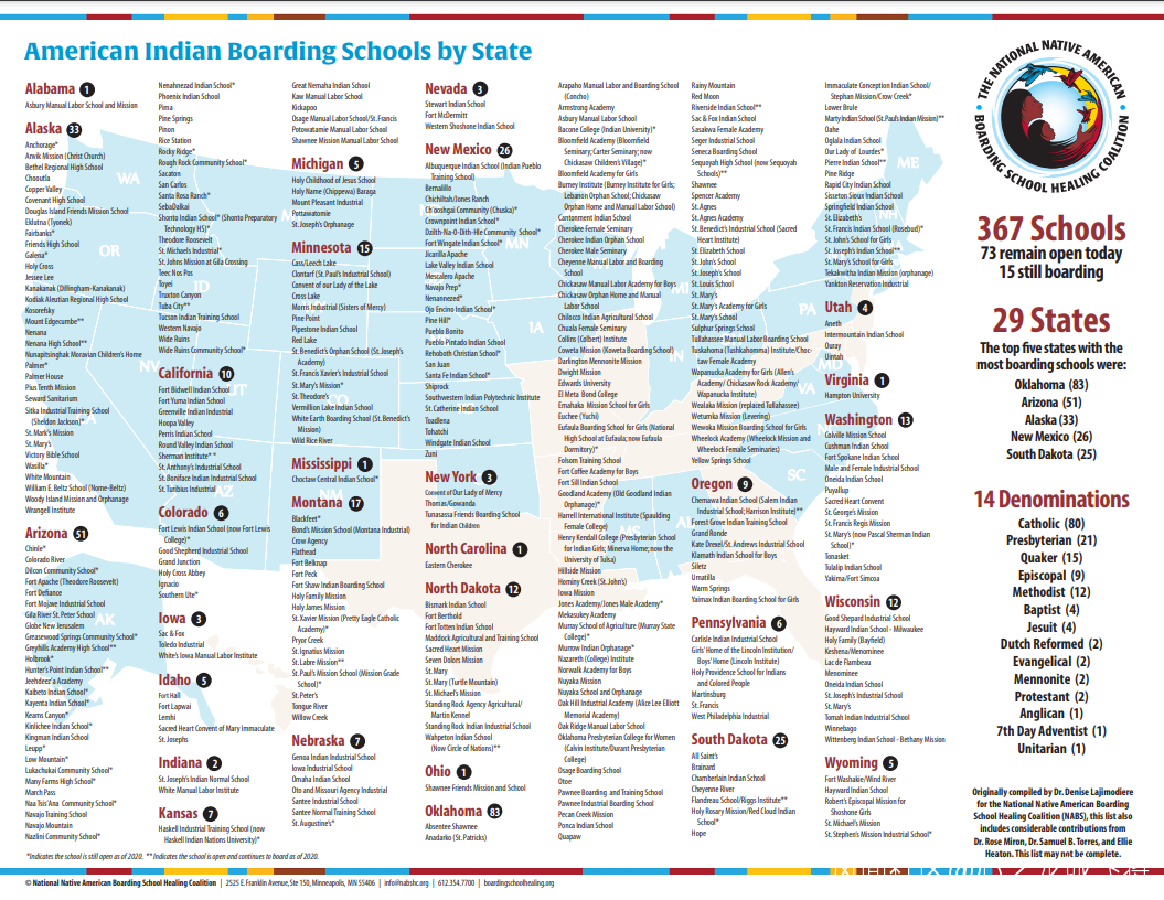 美國印第安寄宿學校分佈情況(來源:美國全國土著居民寄宿學校治癒聯盟網站)