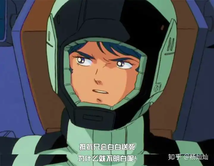 雖然不少日本文藝作品都熱衷於模糊侵略者的暴行,但鑑於藝術創作的合理性,總有一些暴行是無法被模糊的,比如侵略軍對反抗軍的暴力鎮壓,這時一些在立場上有所偏頗的人,就會將一部分責任歸咎於反抗軍的激烈抵抗,正所謂“雖然我侵略你的國家有99%的責任,但抵抗激烈,讓我們不得不加強鎮壓力度的你就沒有1%的責任麼?”這段話在古早古早的形態,就是“高達”系列中的著名作品《機動戰士高達Z》中的主角卡繆的著名台詞:“抵抗只會白白送死,為什麼就不明白呢!”