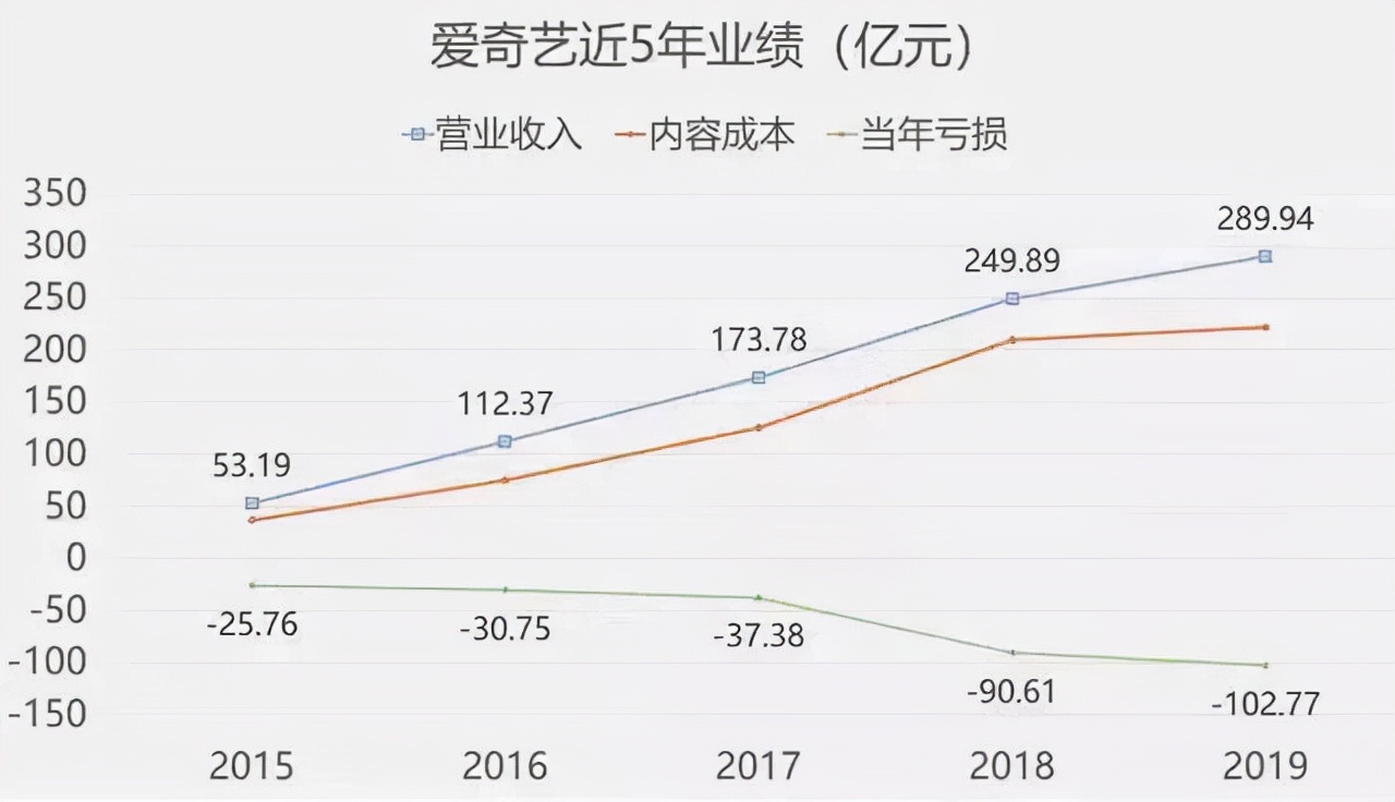 愛奇藝內容成本上的投入幾乎連年翻倍,但是卻一直在虧損上拖着百度的後腿。