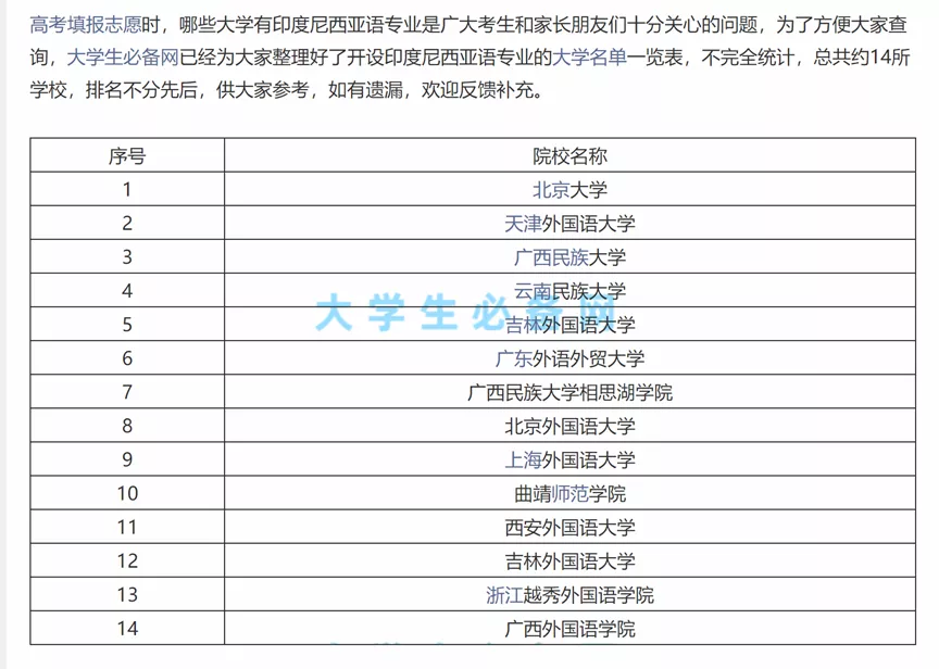開設印尼語專業的高校,2014年時還屈指可數,但到了2021年,開設的高校已達14所,既有北京、上海、天津、浙江等發達省份,也有廣西、雲南等邊境省份,甚至還有吉林、陝西等北方省份。