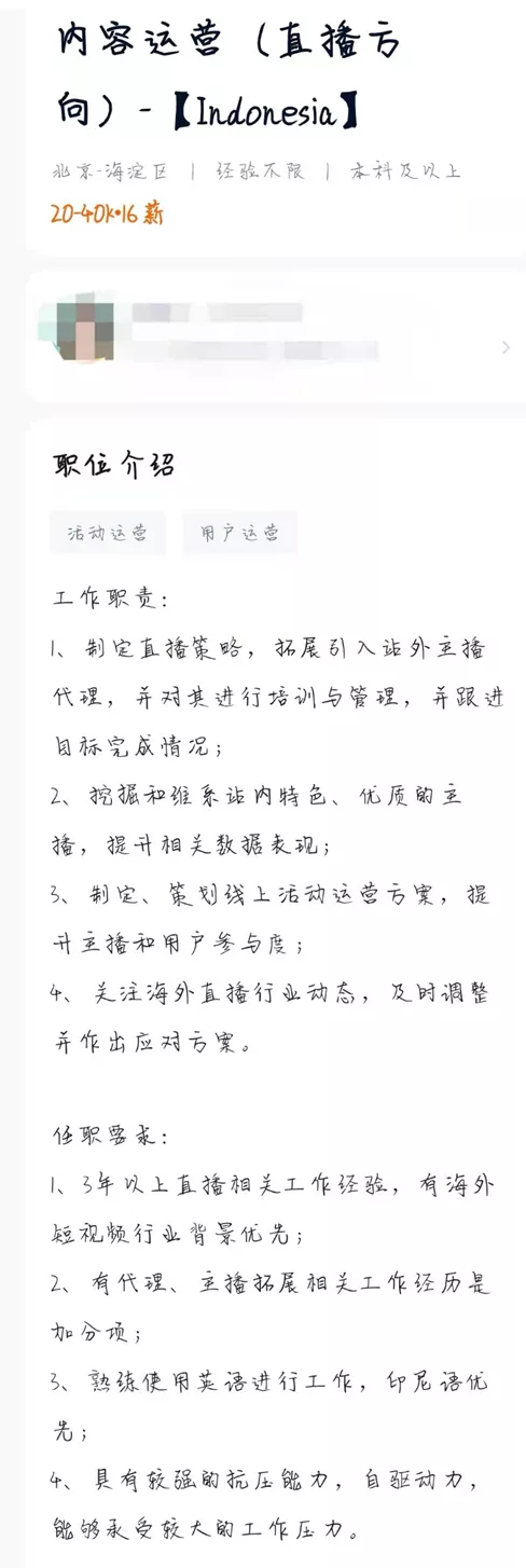 以某大廠的運營崗位招聘需求舉例,即使掛名印尼語崗位,也是把熟練掌握英語放在第一,並要求具備行業經驗和從業背景,印尼語只是順帶的要求。畢竟在外企或者大廠,不是所有人都會小語種,但大部分人都要求會英語,沒有公司會為你的不足買單。
