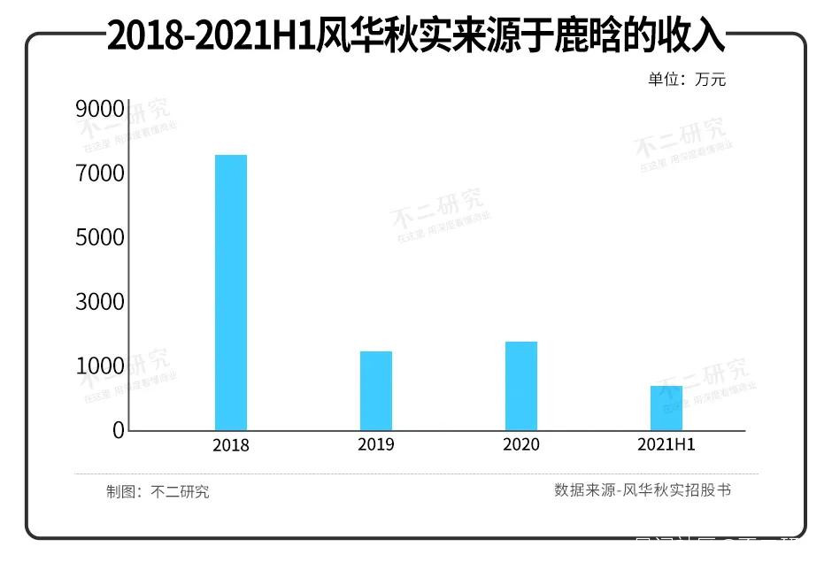 而“鹿晗廠牌”風華秋實的營收數據則經歷着頹勢。