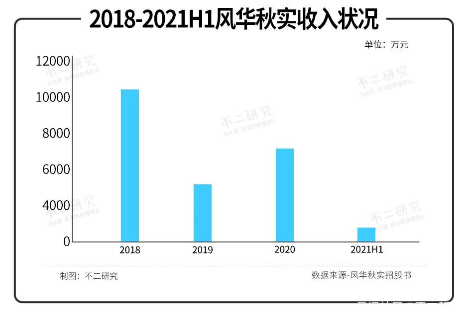 招股書顯示,風華秋實2018—2020年收入分別為1.00億元、0.56億元、0.71億元,同期淨利潤為1863萬元、1882萬元及4272萬元。而今年上半年,風華秋實僅實現營收1525萬元,並由盈轉虧,淨虧損達1000萬元。