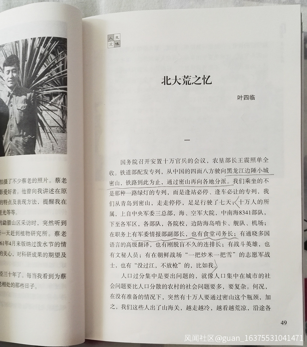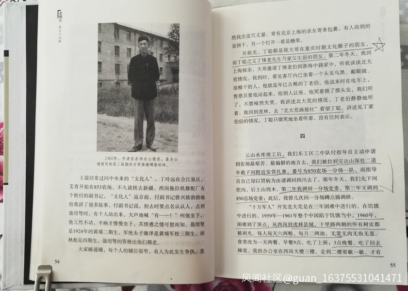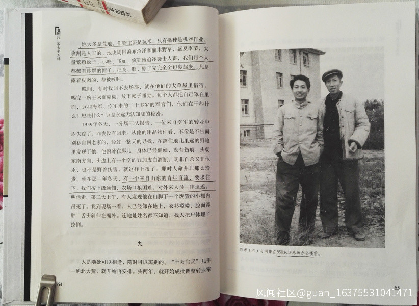 他在著名的雜誌式叢書《老照片》的第75輯上發表了一篇回憶50年代自己在當時位於虎林縣的850軍墾農場工作的經歷的文章,其中就講到了三年困難時期當地的慘況:公路路邊的行道樹的樹皮全部被饑民們剝光、吃掉了!現將原文的主要內容摘錄在下面: