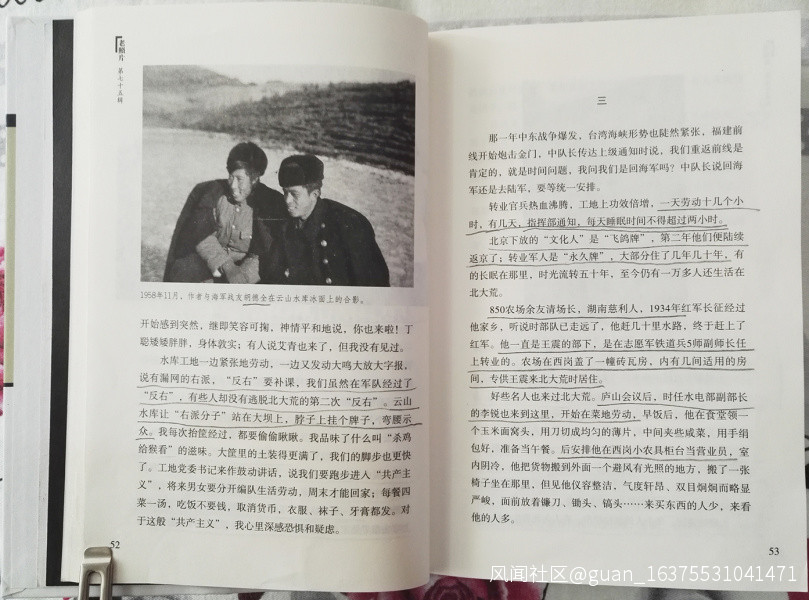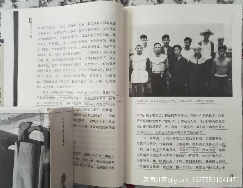 在雲山,我們青島海軍學校來的,被編入東工區三中隊,海校來北大荒的幾十人編成一個分隊,我在一班。……(中略)我們在雲山水庫並肩勞動八個月,水庫竣工後就各奔東西不知去向了。