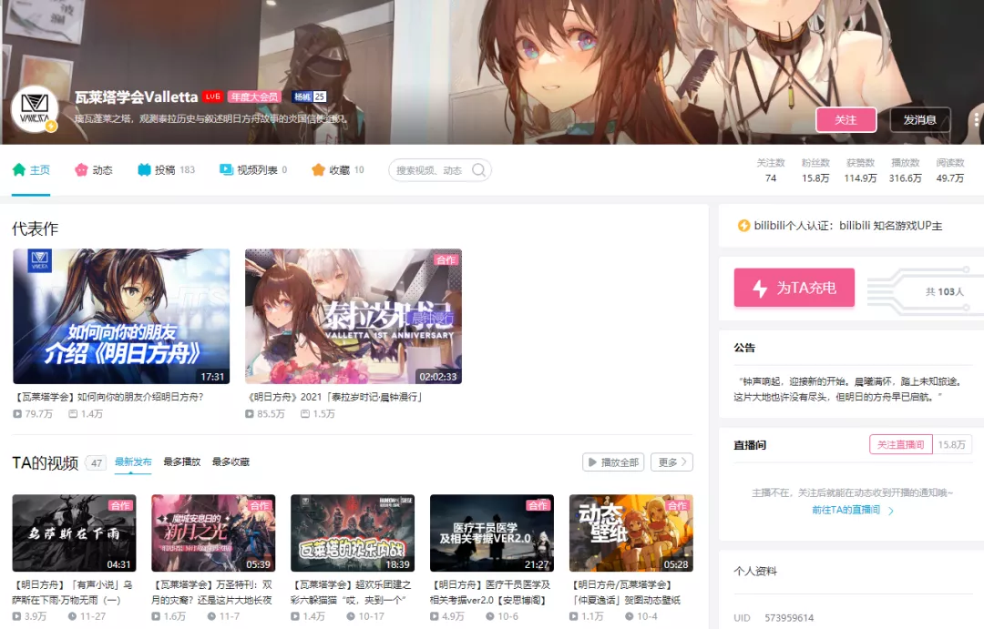 瓦萊塔學會曾參與了明日方舟週年慶的製作,官方也為此提供了一定支援,相對比較為愛發電,而阿卡西鏈遊工會的商業程度則要高很多。