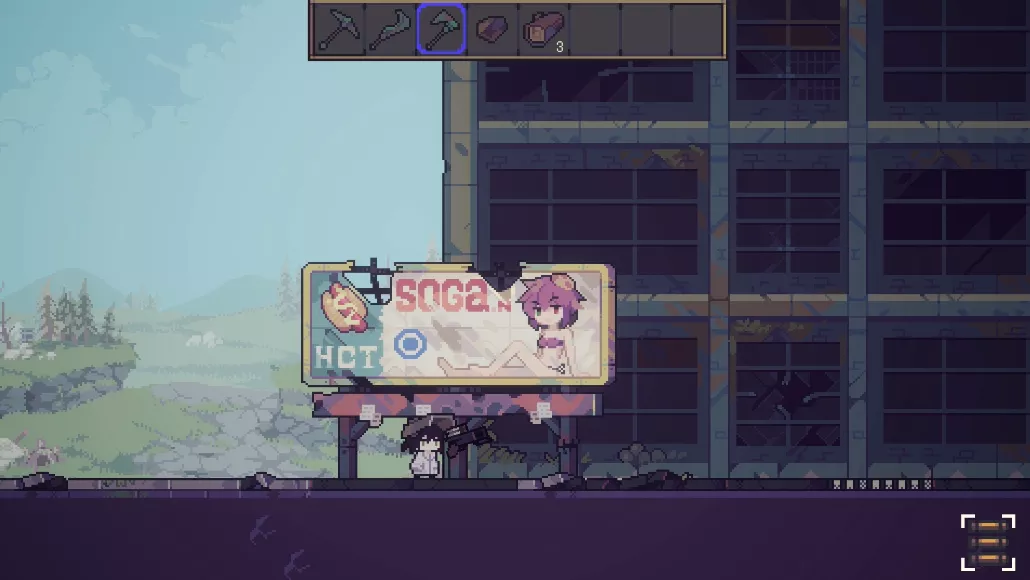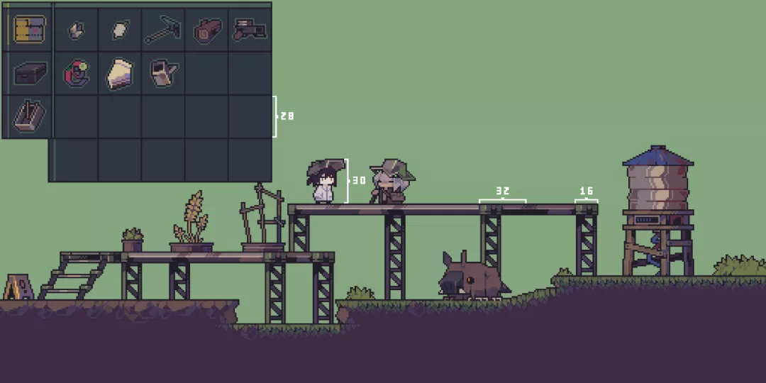這款遊戲叫做《多洛可小鎮》,遊戲元素包含了像素風格二次元、末世、野外探索+pve戰鬥以及種田。