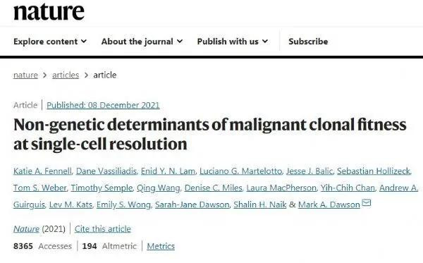 Fennell, K.A., Vassiliadis, D., Lam, E.Y.N. et al. Non-genetic determinants of malignant clonal fitness at single-cell resolution. Nature (2021). doi:10.1038/s41586-021-04206-7