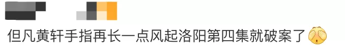 當黃軒飾演的高秉燭差點揭下十六夜的面罩時,網友評“但凡黃軒的手指再長一點”,好傢伙,“伸出圓手”梗是過不去了是吧?