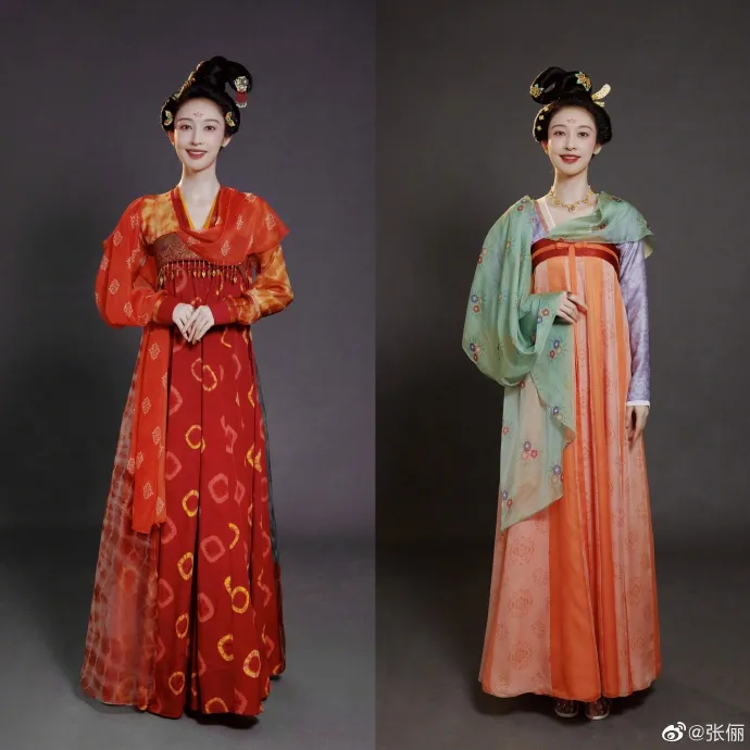 肩上披帛顯仙氣飄飄,經典“紅配綠”更是莫名地淡雅脱俗,原來,古人的造型就是這樣呢!