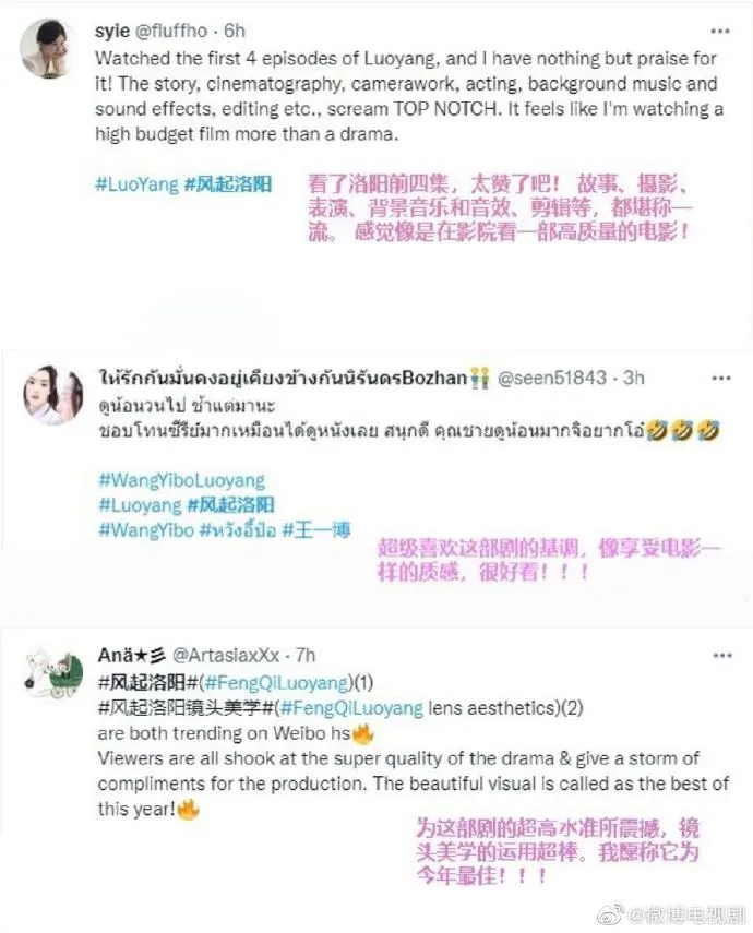 也收穫了超高讚譽,外國網友評價稱“高質量的電影”、“洛陽佈景既奢華又令人印象深刻”、“打戲不錯”……