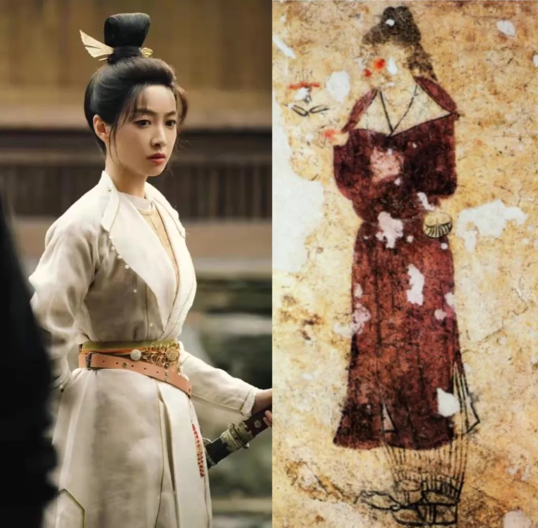 翻領設計的服裝在角色身上數見不鮮,這也是古代壁畫中常出現過的。擱現在也不過時,要不怎麼説時尚是個圈呢?