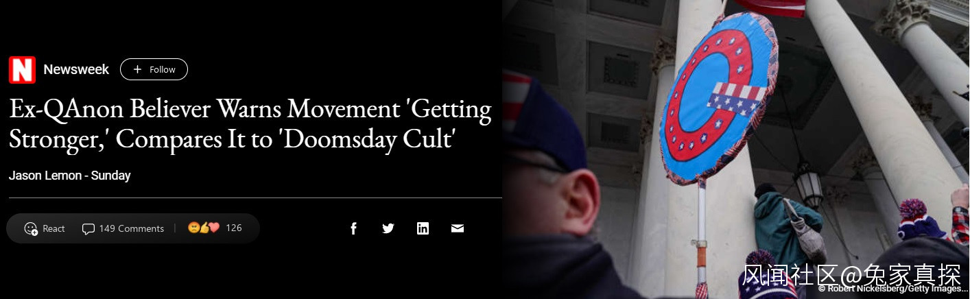 《新聞週刊》:一位 QAnon 陰謀論的前信徒警告説,這場運動似乎“變得越來越強大”,將這種奇異的運動比作“世界末日崇拜”。