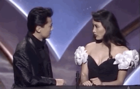 在1986年金球獎頒獎典禮直播中,鏡頭掃過了那年32歲尊龍的側臉 ——他穿着一件黑色的西服坐在台下,臉上沒有太多表情。