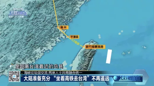 目前,在京台通道的建設中,北京至福州段鐵路已經建成通車。基於此,福州下轄的平潭縣,就被視為這條鐵路通台路線上的最後一個“中轉站”,因為它與台灣新竹南寮漁港相僅距63海里,是距離台灣最近的島縣。