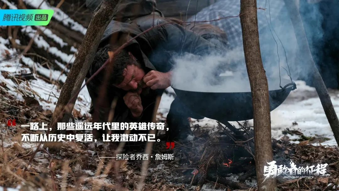 探險者以第一人稱講述自己的感受,同樣是烘托“沉浸感”的最佳方式。在第三集《長白(上)》裏,竇驍和喬西·詹姆斯在雪地中跋涉長達三個小時後,用枯樹枝生的火堆融化雪水來補充水分,竇驍感嘆道:“沒什麼能比在冰天雪地中看到一堆篝火,更讓人感到慰藉的事情了。”
