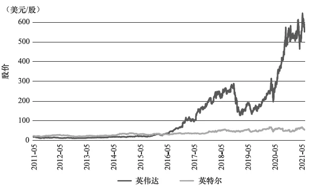 十年間(2011年5月~2021年5月)英偉達彎道超車英特爾