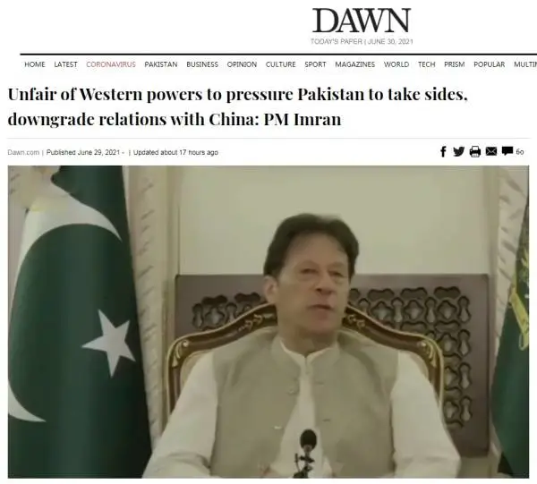 今年6月,巴基斯坦總理伊姆蘭·汗在接受媒體採訪時表示,儘管受到西方的壓力,但中巴友誼不會改變。圖源:觀察者網