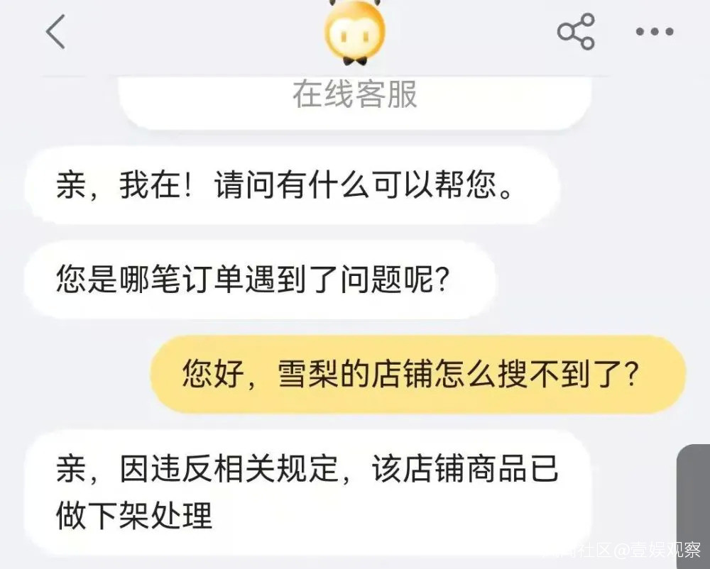 12月9日,雪梨、林珊珊微博賬號被封禁;12月10日,雪梨關聯的多家相關企業註銷,併網傳“雪梨被曝不給員工交社保”,當天宸帆否認該説法;雙12前夕,雪梨官方公眾號“雪梨劇透社”更名為“錢夫人劇透社”,淘寶店鋪名稱中去掉“雪梨”字樣,店鋪主頁仍然是正常的雙12預熱階段;但在雙12開播前,雪梨的淘寶店鋪卻“消失”在一片熱鬧的促銷氛圍中,有網友抱怨“本來加購了一波衣服,等到下單才發現失效了”,淘寶平台客服對此的回應是:“因違反相關規定,該店鋪商品已做下架處理”。