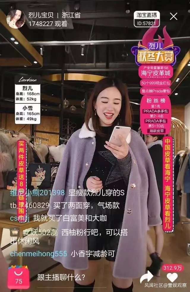 2017年,一場近7000萬的直播銷售額把薇婭帶到了話題的風口。這場直播一直從7點播到了12點40分,吸引153.45萬用户觀看,點贊數達到1230萬。借勢直播,薇婭一戰成名。在2017年的淘寶帶貨的排行榜TOP20中,薇婭穩居榜首,成為當年淘寶最具商業價值的主播。這份榜單中,還出現了烈兒寶貝、陳潔kiki等淘女郎的身影。