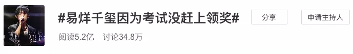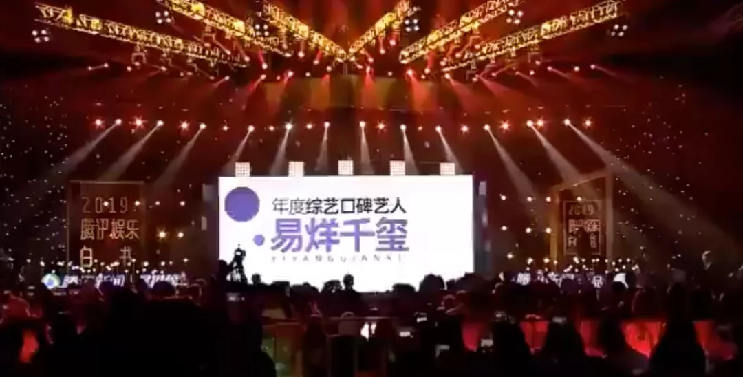 等到頒發完了,易烊千璽才到現場,主辦方為他破例又頒了一遍。