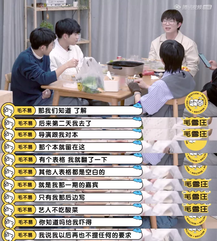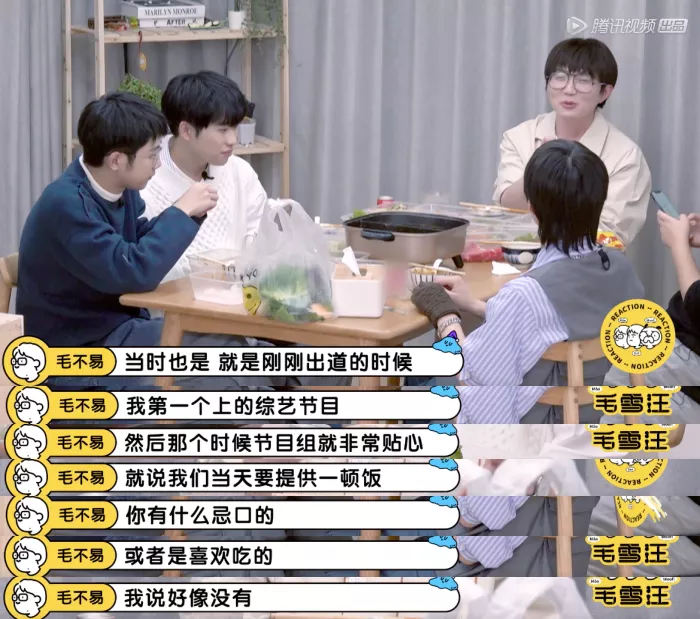 毛老師第一次上綜藝時,導演非常貼心且禮貌地問,我們定餐,您有什麼喜歡吃的嗎?