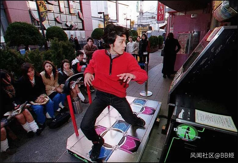 (圖:2000年,大阪市北區茶屋町,遊戲廳DDR機台跳舞的年輕人,出自《朝日新聞社》)