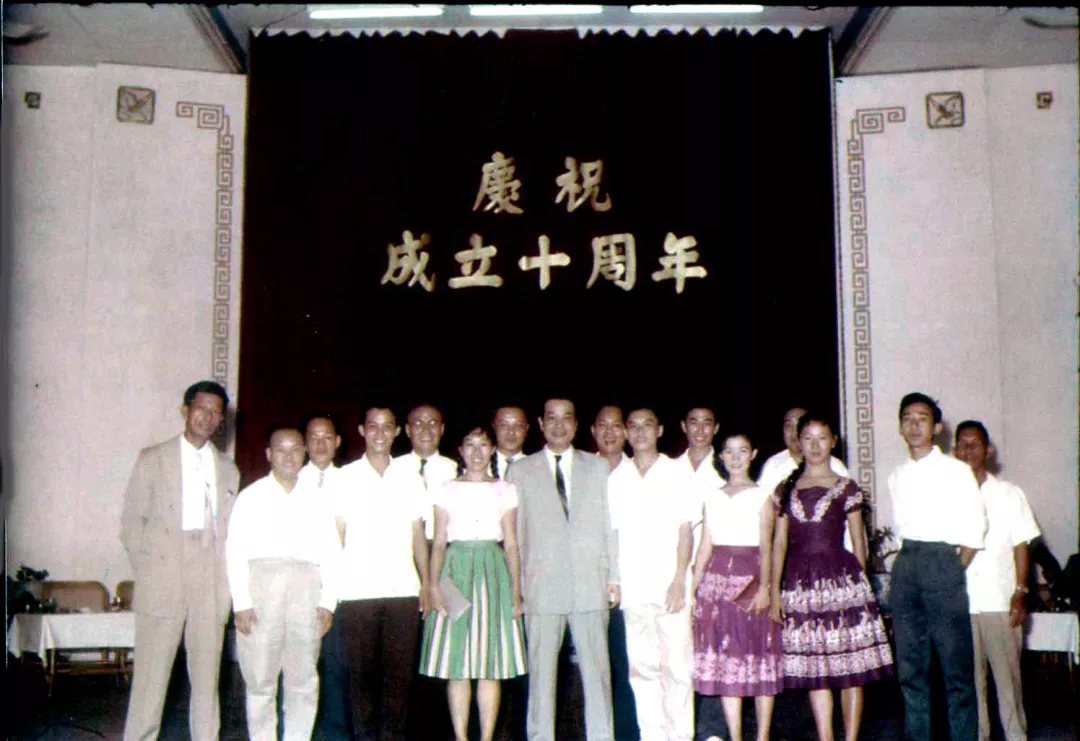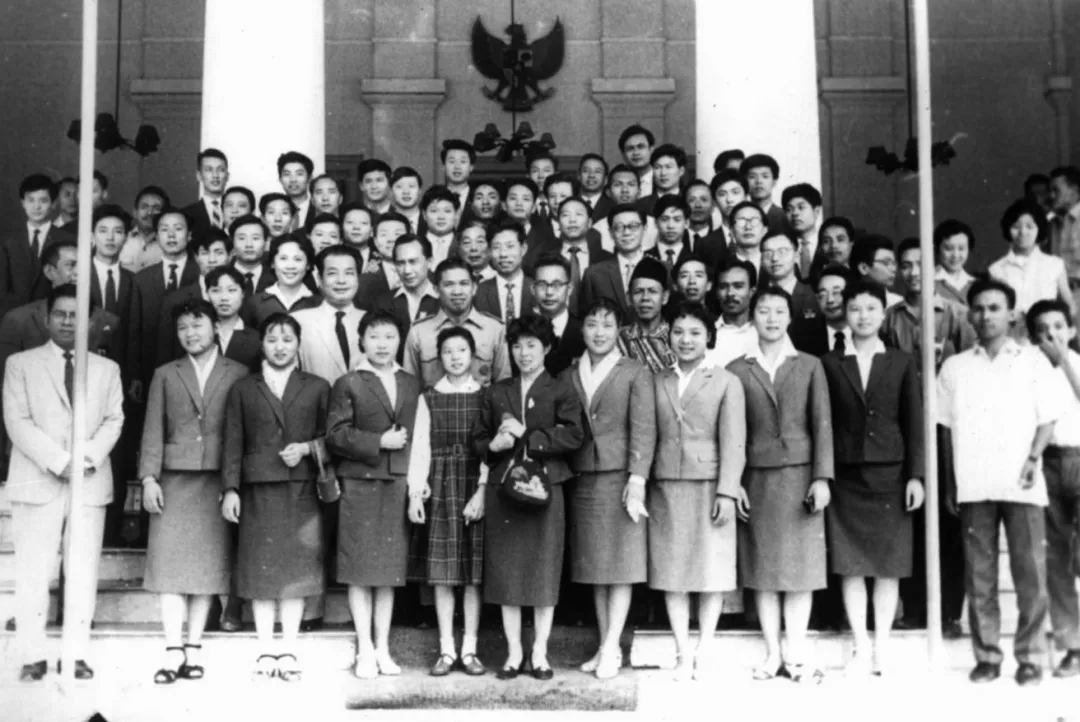 1959年10月慶祝中國成立十週年,中國現代國畫、版畫、圖片展在雅加達舉行,司馬文森和工作人員合影。